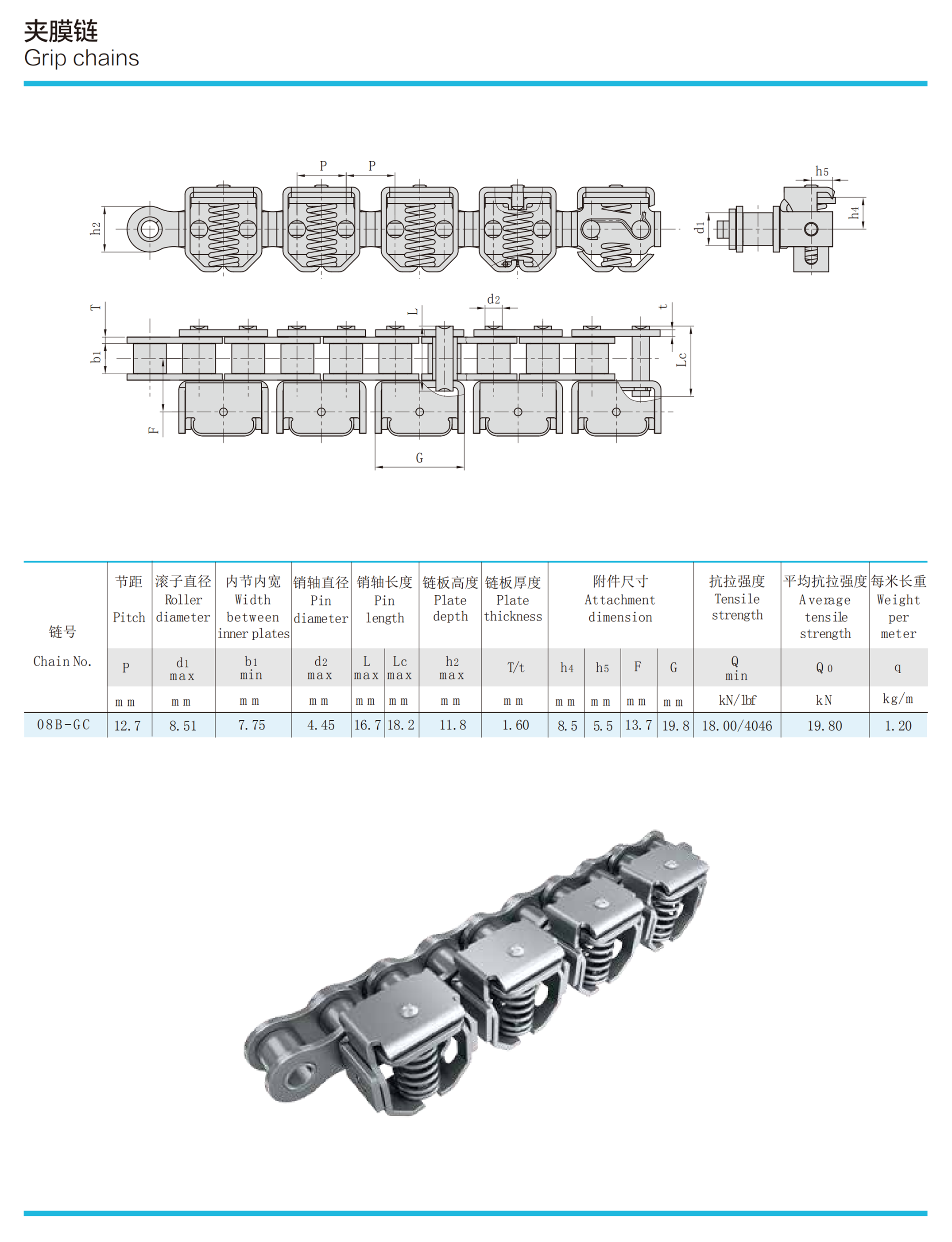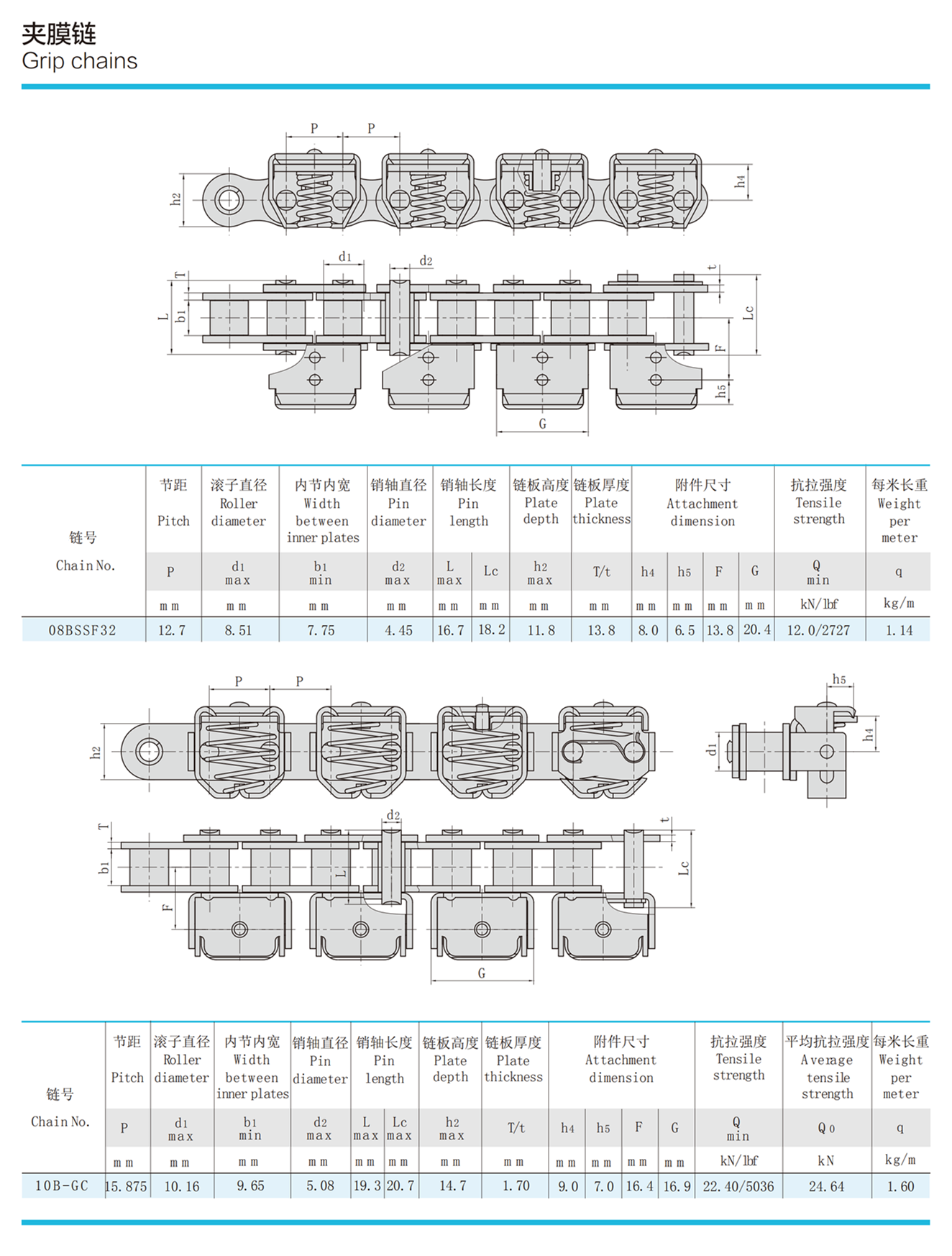 Las cadenas de agarre para maquinaria agrícola (o simplemente denominadas cadenas transportadoras de sujeción) son cadenas que se utilizan especialmente para sujetar y transportar tallos de cultivos en maquinaria agrícola, como trillas automáticas agrícolas y cosechadoras de cereales semialimentados. Por lo tanto, estas cadenas también se conocen como cadenas de alimentación de maquinaria agrícola y cadenas trilladoras. La cadena de sujeción se divide en una estructura de cadena sin manguito y una estructura de eslabón interior con manguito; La cadena de agarre se usa ampliamente en las cosechadoras de arroz. La estructura básica de una cadena es similar a la de una cadena de rodillos de manga, caracterizada por una placa de cadena dentada de punta alta y un gran ancho interior de la sección interior para aumentar el ancho y la firmeza de la sujeción. Durante el funcionamiento, la cadena de sujeción y el riel de guía juntos forman un mecanismo de soporte y sujeción para los tallos del cultivo y dependen de la operación de la cadena para lograr el objetivo de transportar los tallos de manera uniforme. La cadena de agarre generalmente tiene una velocidad baja cuando se usa y soporta menos carga de tracción durante la operación. Son cadenas transportadoras funcionales ultraligeras. La cadena transportadora de sujeción se puede utilizar en varias filas en paralelo. Además, de acuerdo con las necesidades reales, siempre que aumente el espacio entre la bisagra de la cadena y las placas de la cadena interior y exterior, la cadena de sujeción también puede tener la función de flexión lateral.